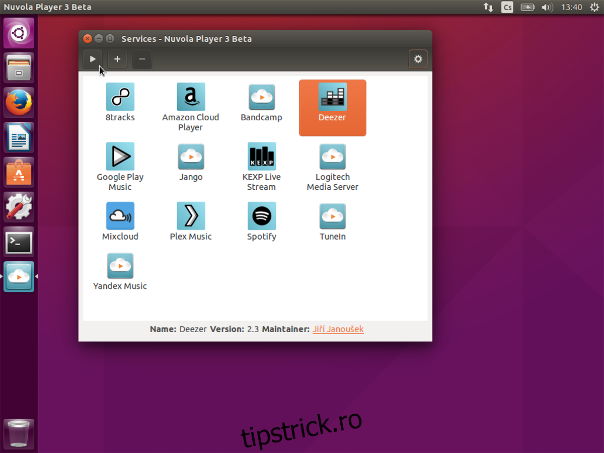 Dacă preferi să nu stochezi fișiere muzicale local sau folosești în principal servicii muzicale online precum Spotify, Google Music etc., Nuvola Player ar putea fi alegerea perfectă. Spre deosebire de multe playere muzicale orientate spre cloud, Nuvola nu se concentrează pe un singur serviciu, ci oferă suport pentru o varietate largă de platforme. De exemplu: utilizezi Spotify? Click pe butonul Spotify. Folosești alt serviciu? Selectează opțiunea respectivă.