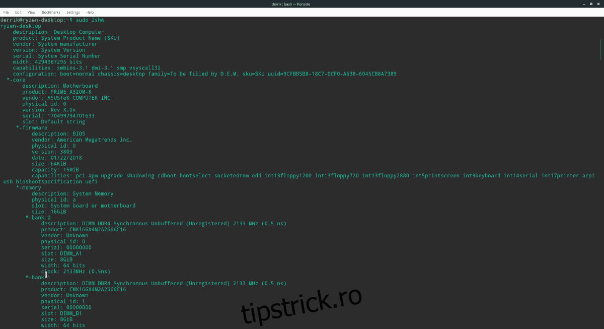3. Hardware Lister (lshw): Utilitar puternic pentru informații hardware detaliate