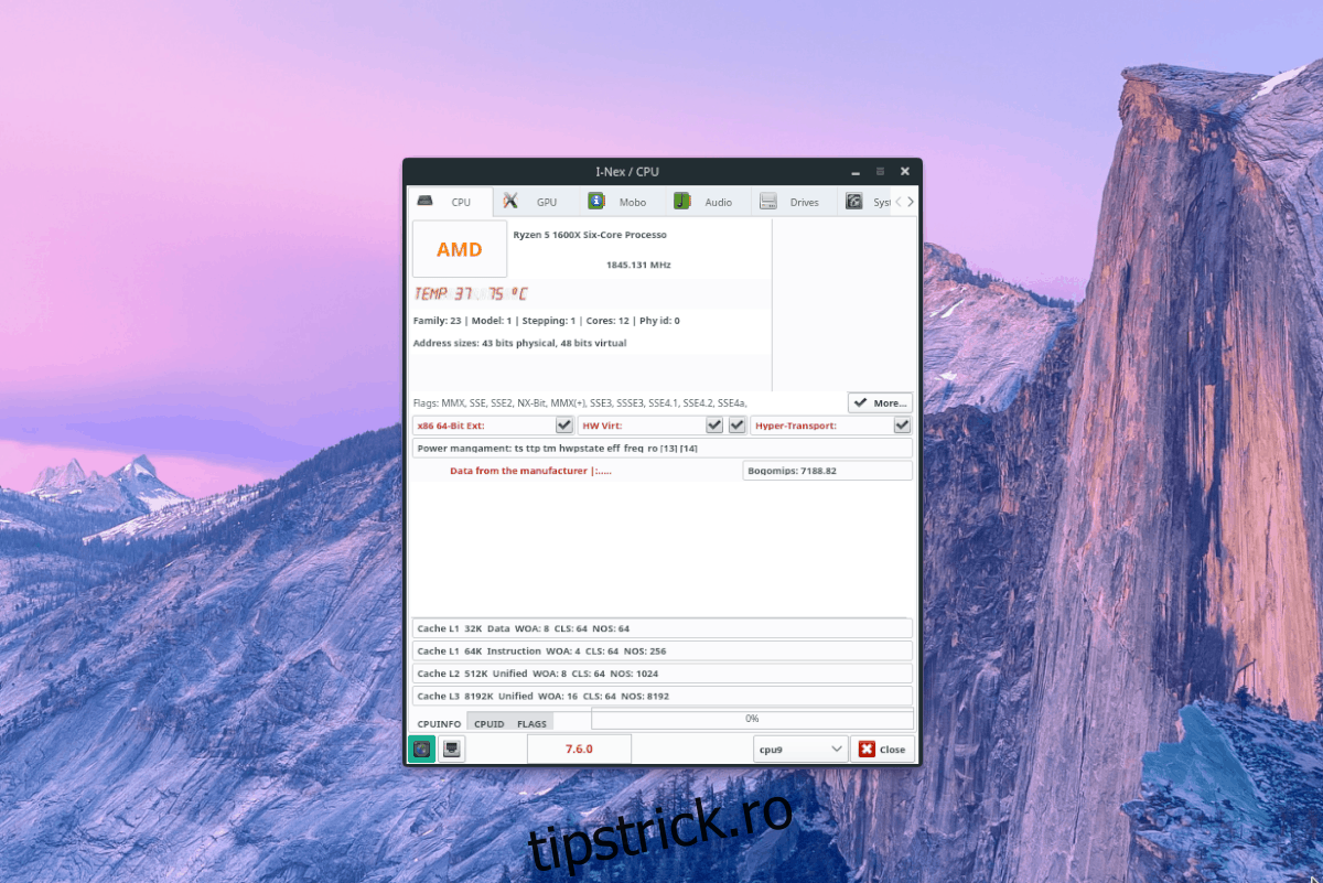 I-Nex este un alt instrument grafic care colectează informațiile hardware ale sistemului într-o interfață bine organizată, cu un aspect similar cu CPU-Z.