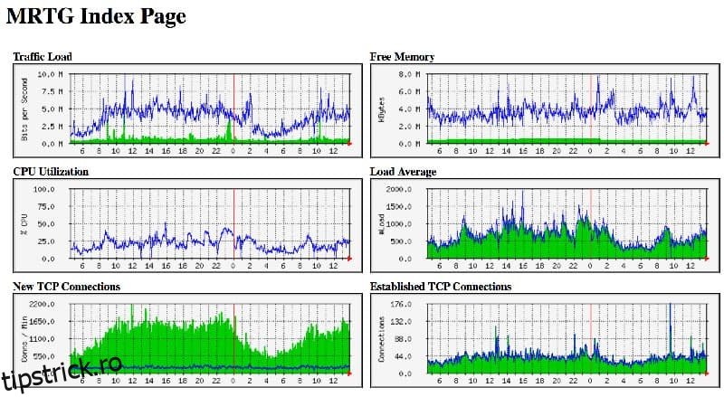 Deoarece sunt cele mai de bază instrumente de monitorizare a rețelei și sunt adesea primele implementate, vom începe cu o trecere în revistă a principalelor instrumente open-source pentru monitorizarea lățimii de bandă. Toate acestea folosesc SNMP pentru a interoga periodic dispozitivele din rețea și pentru a genera grafice de utilizare a lățimii de bandă, oferind o vizibilitate esențială asupra utilizării rețelei.