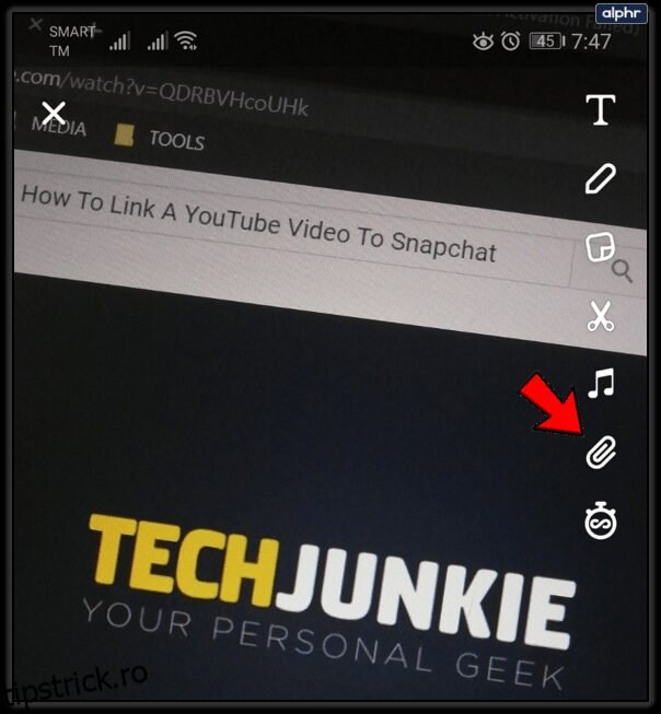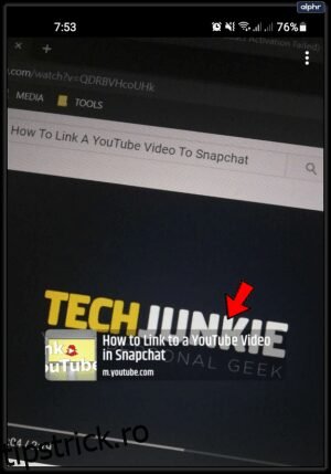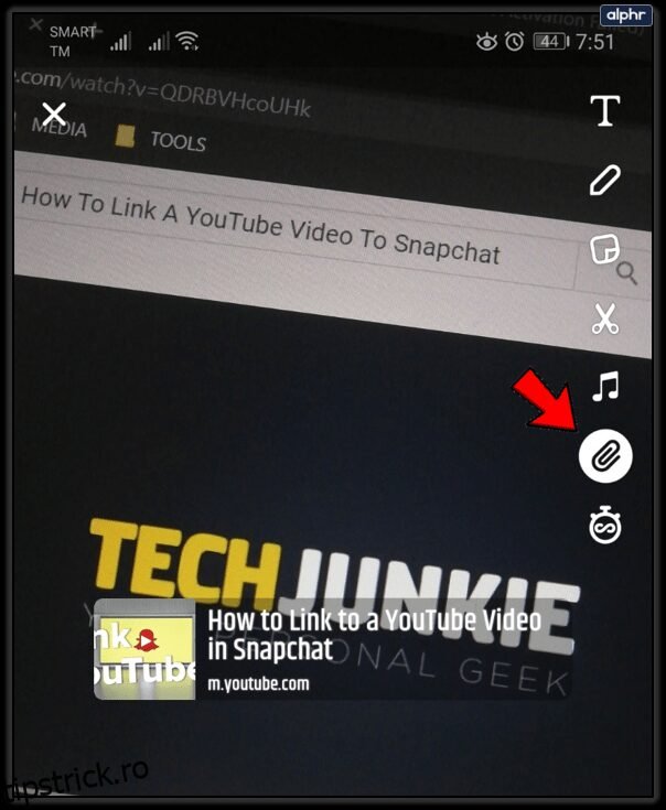 - Revenind la Snap, pictograma Link ar trebui să fie iluminată sau evidențiată. Astfel vei ști că videoclipul YouTube a fost atașat cu succes la Snap-ul tău.