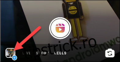 Pentru a începe, deschide aplicația Instagram pe dispozitivul tău iPhone sau Android. Apoi, apasă pictograma camerei, situată în colțul din stânga sus, pentru a accesa camera Instagram Stories.