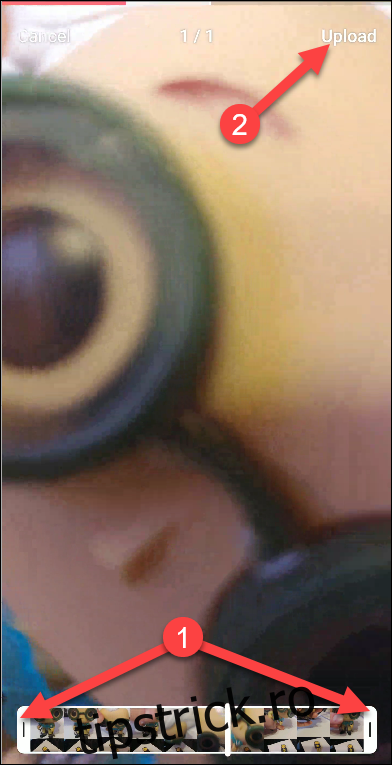 Acum, poți scurta videoclipul trăgând de capetele liniei temporale. Apasă „Încarcă” când ai terminat.