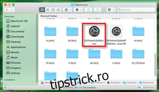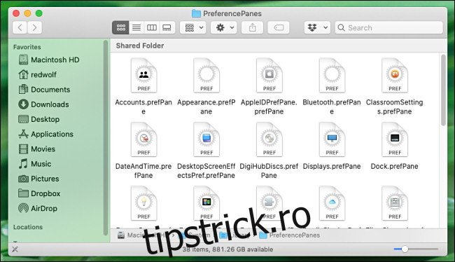 (Notă: dacă ești în căutarea unui fișier de panou de preferințe de la un dezvoltator terț, verifică locația /Library/PreferencePanes.)