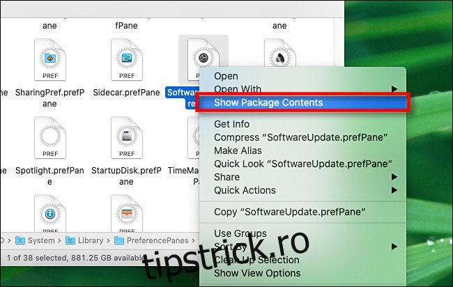 După ce ai găsit fișierul panoului de preferințe dorit, fă click dreapta pe el și selectează opțiunea „Afișați conținutul pachetului”.