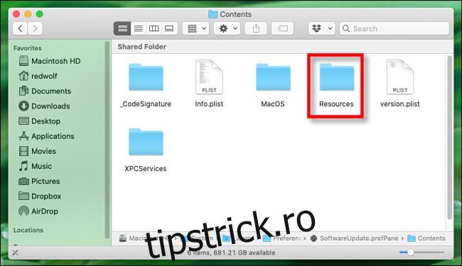Fiecare fișier cu extensia .prefPane este, de fapt, un tip special de folder, numit „pachet”. Vom deschide acest pachet pentru a accesa resursele sale interne.