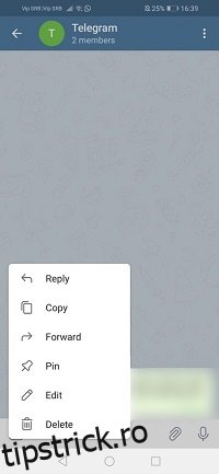 • Notă: pe dispozitivele iOS trebuie să apeși lung mesajul pentru a deschide meniul. Restul procesului este identic.
