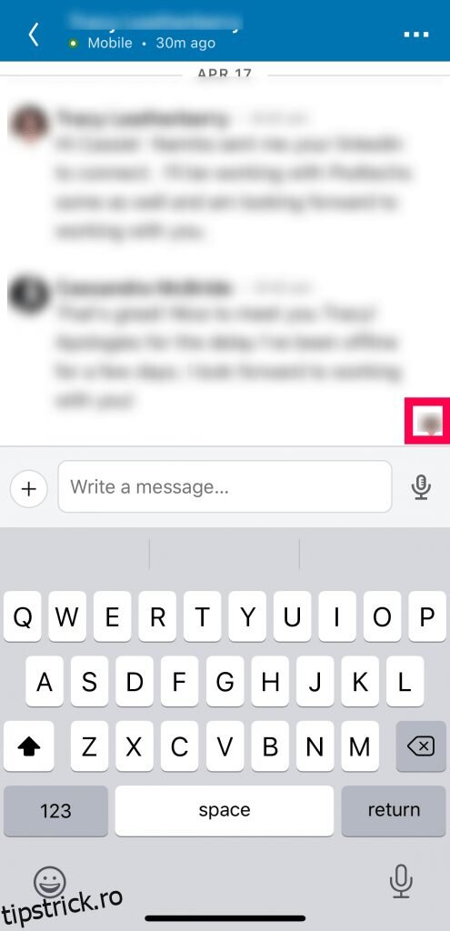 În cazul în care destinatarul are confirmările activate, vei observa o versiune mică a fotografiei sale de profil în colțul din stânga jos al mesajului.
