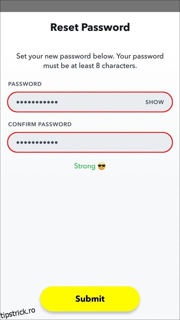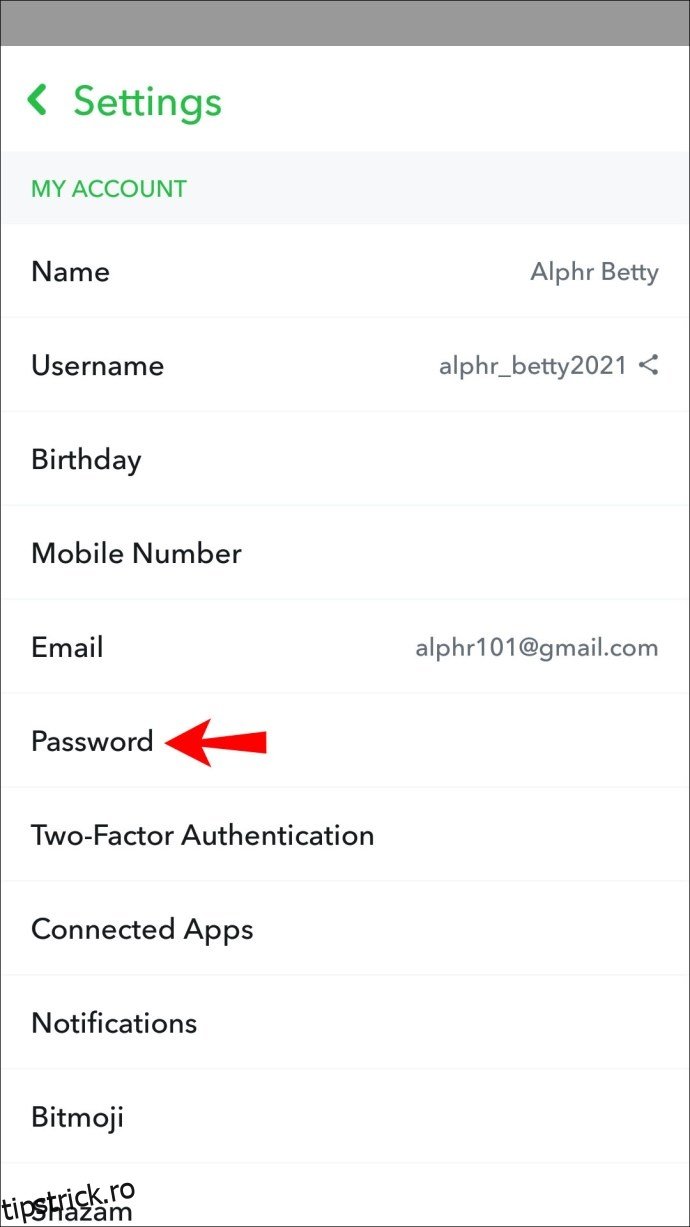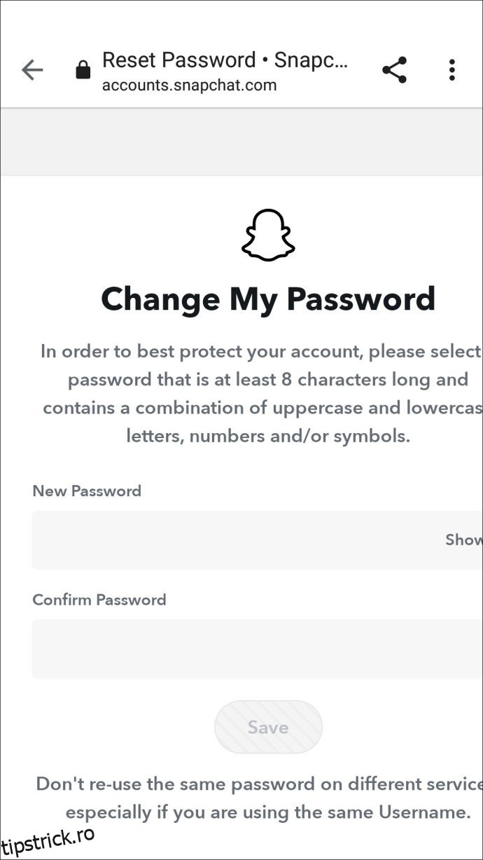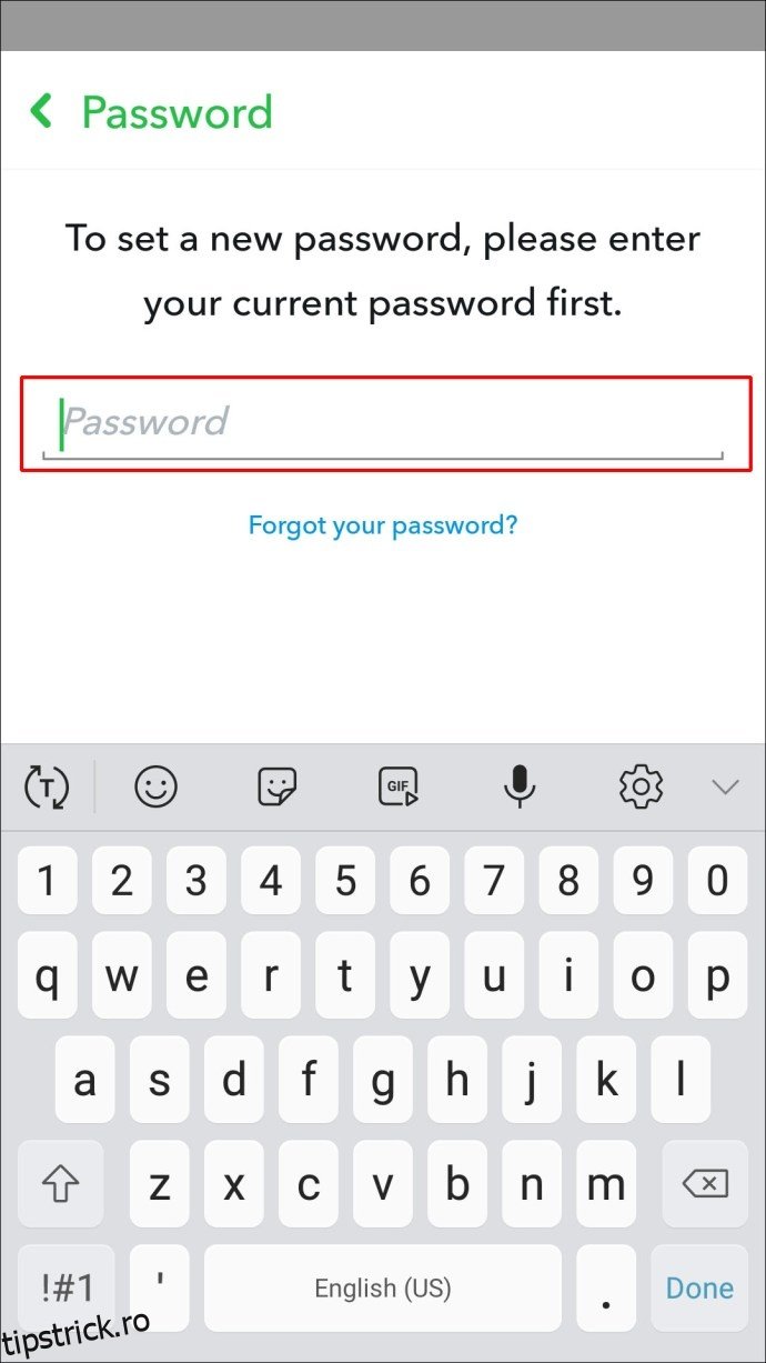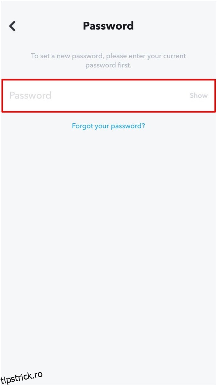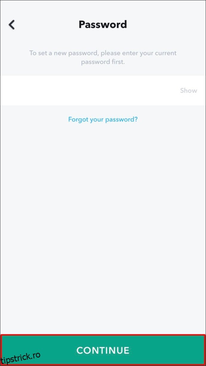 Snapchat facilitează schimbarea parolei atunci când este necesar. Acest lucru se poate face din meniul „Setări” al contului dumneavoastră. În cazul în care uitați parola, o puteți reseta din ecranul de autentificare, folosind verificarea emailului sau a numărului de telefon.
