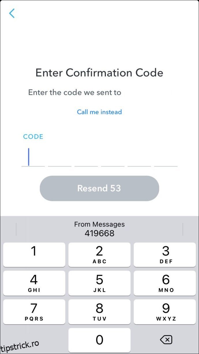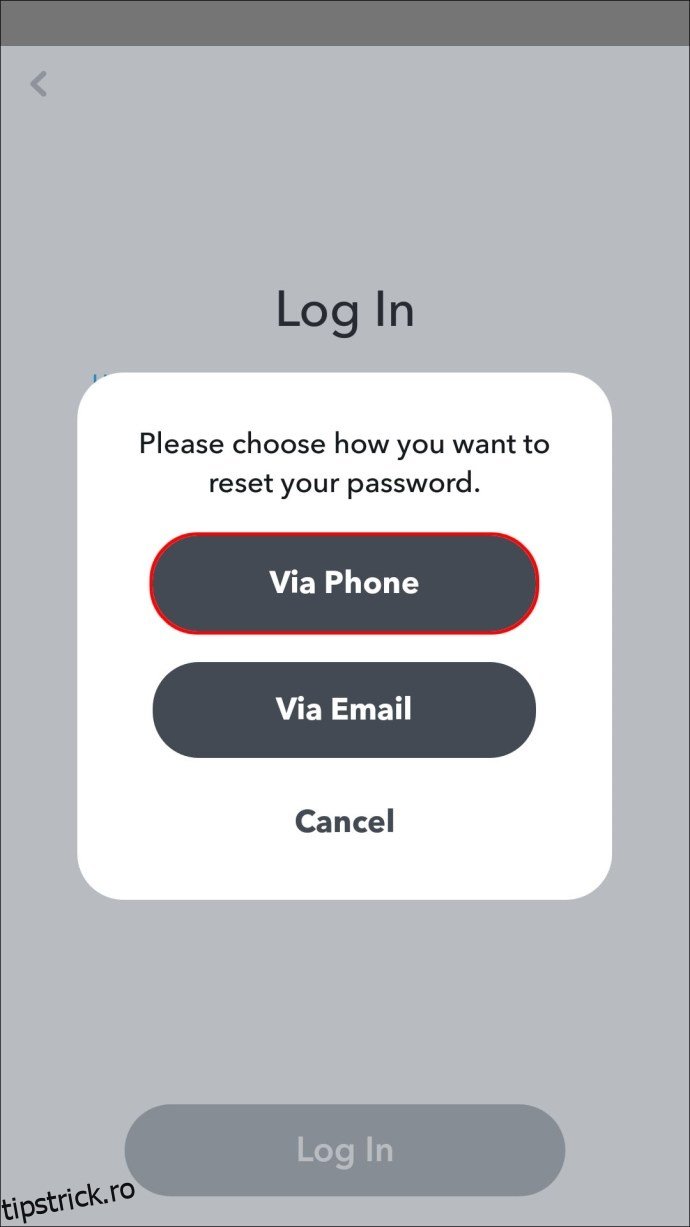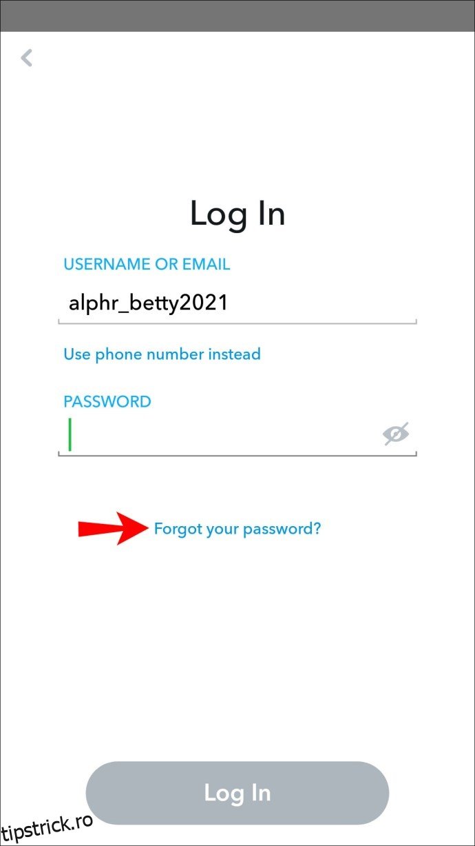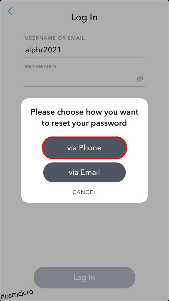 Dacă nu aveți o adresă de email asociată contului dumneavoastră Snapchat, puteți utiliza verificarea prin SMS pentru a reseta parola. Iată cum puteți face acest lucru de pe un dispozitiv iPhone sau Android: