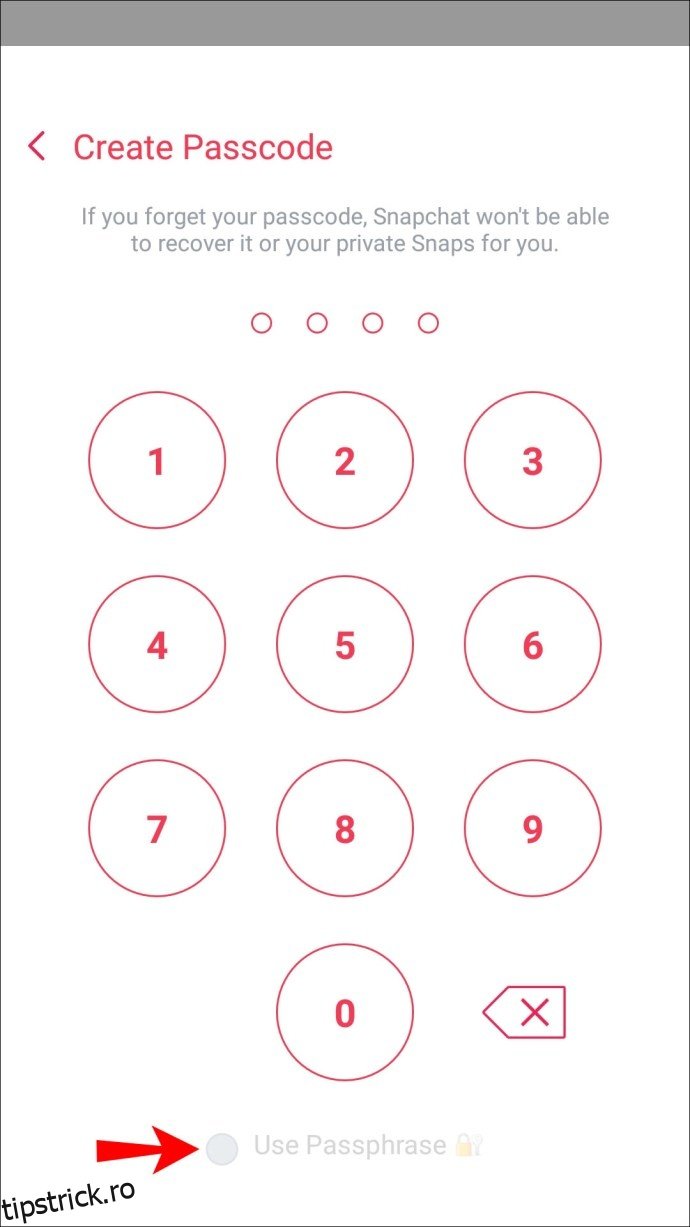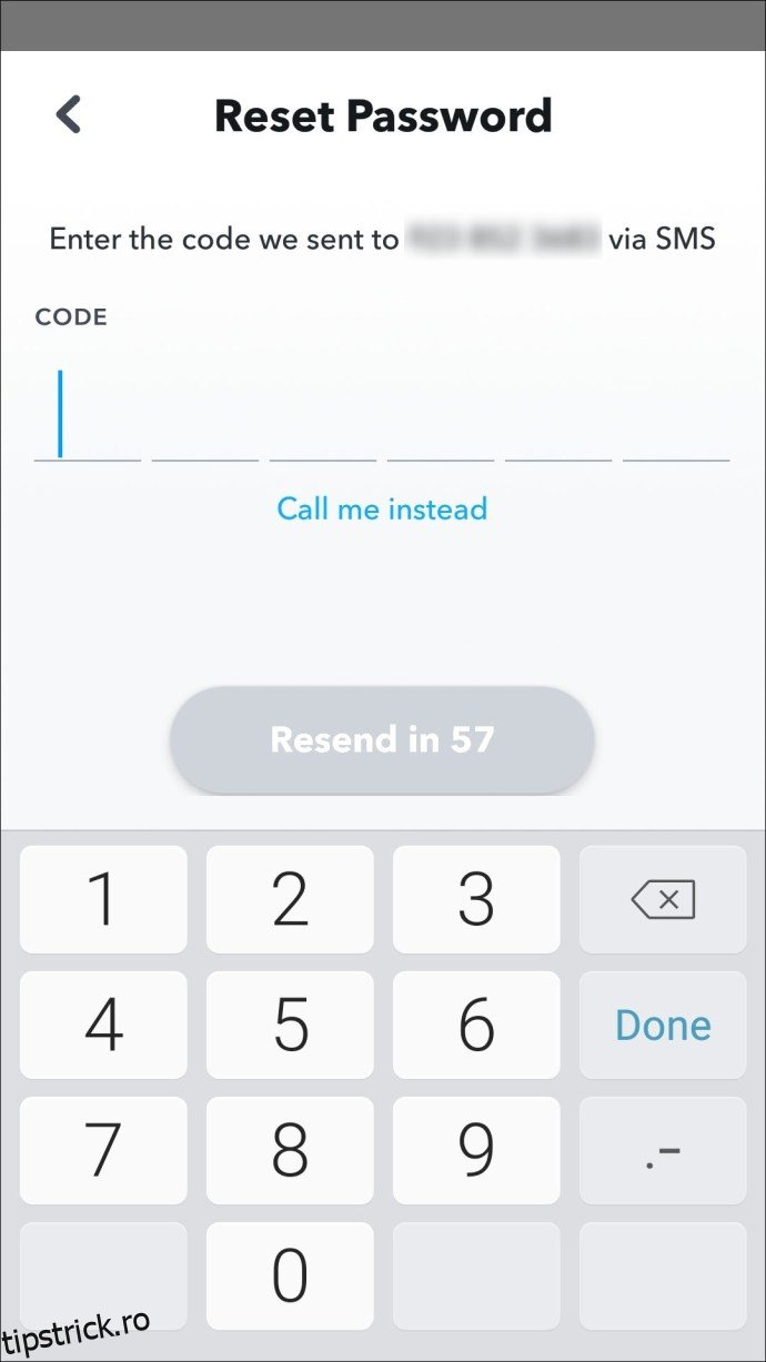 Schimbarea parolei Snapchat folosind numărul de telefon