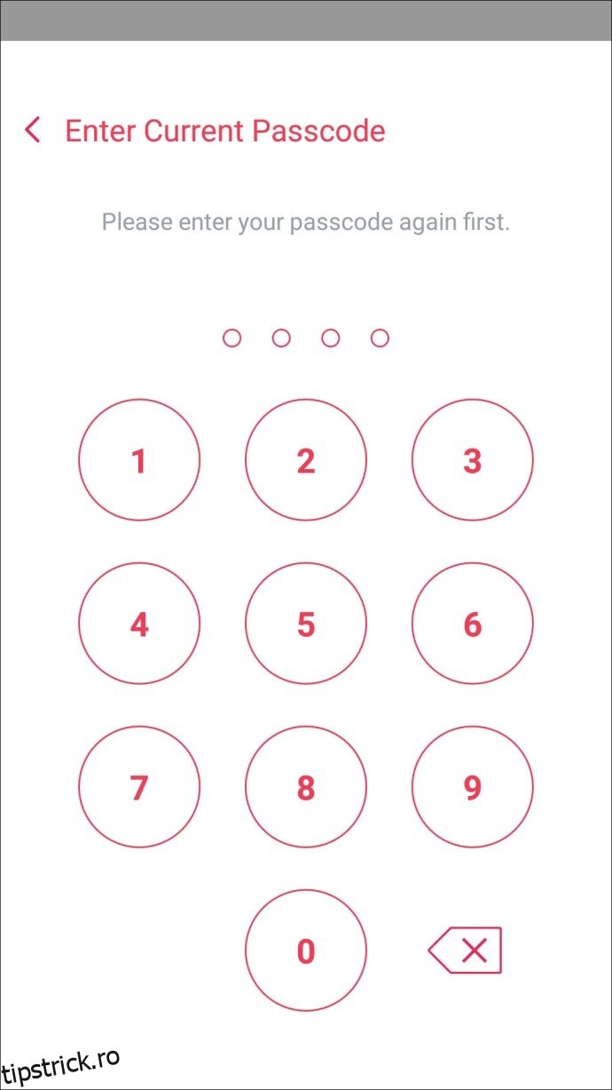 Pentru a schimba parola curentă folosind un dispozitiv Android, urmați acești pași: