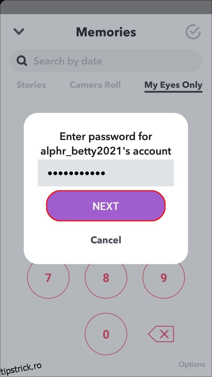 Cum să schimbați parola Snapchat pentru „Doar pentru ochii mei”