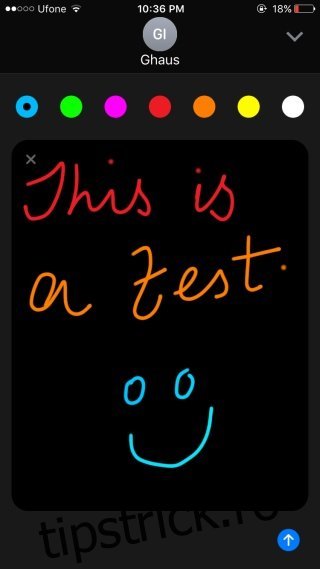 Puteți desena orice doriți și puteți modifica nuanța desenului după preferință. Selectați butonul de trimitere din partea inferioară a ecranului pentru a expedia mesajul.