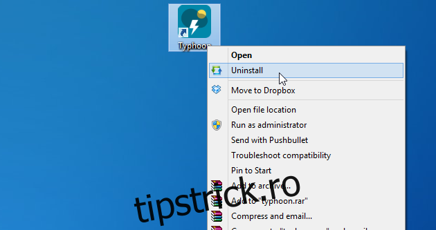 O metodă rapidă de dezinstalare este prin meniul contextual (clic dreapta). Se dă clic dreapta pe comanda rapidă a aplicației și se alege „Dezinstalare”. Această metodă simplifică semnificativ procesul obișnuit de dezinstalare a aplicațiilor.